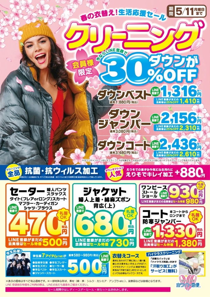 衣替えのクリーニングで集配のご希望がございましたら宅配も致します。3,000円以上無料❗️